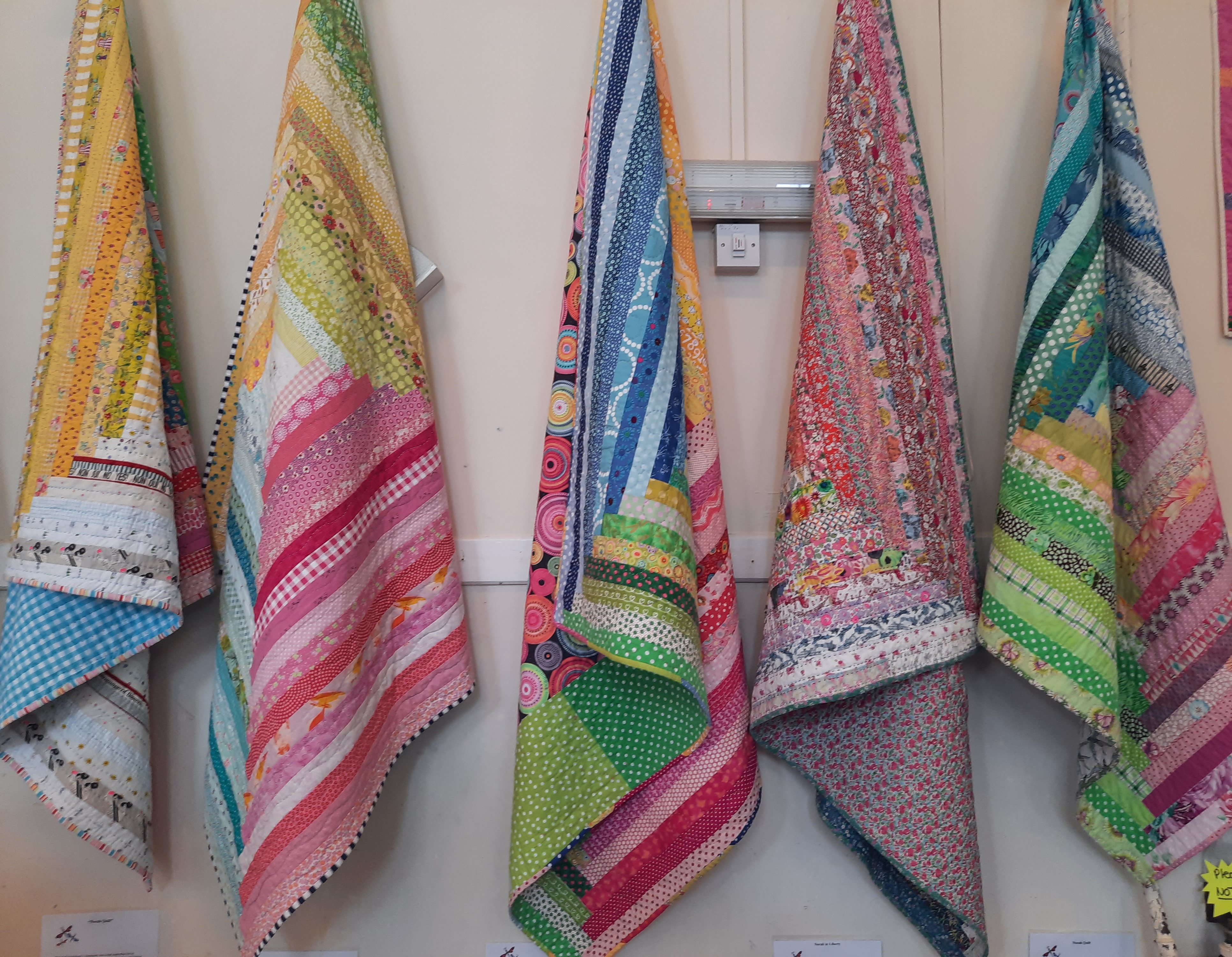 There was a display of log-cabin quilts made by the group, hung informally along one wall.