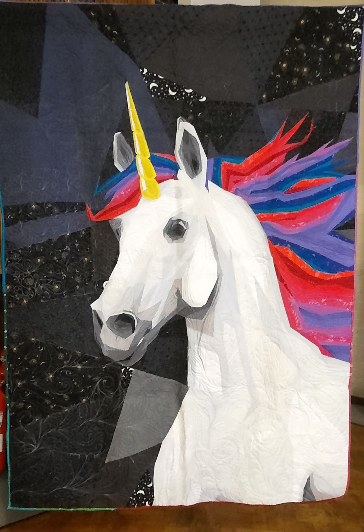 We also had the chance to see the dramatic ‘Unicorn’ quilt which Kerry pieced and machine quilted. It is very striking.