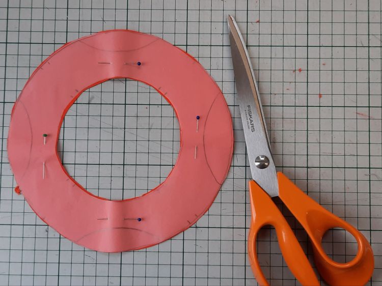 3 From the tracing paper cut out a template for the shape of the belt. Pin it to the orange fabric and cut out.