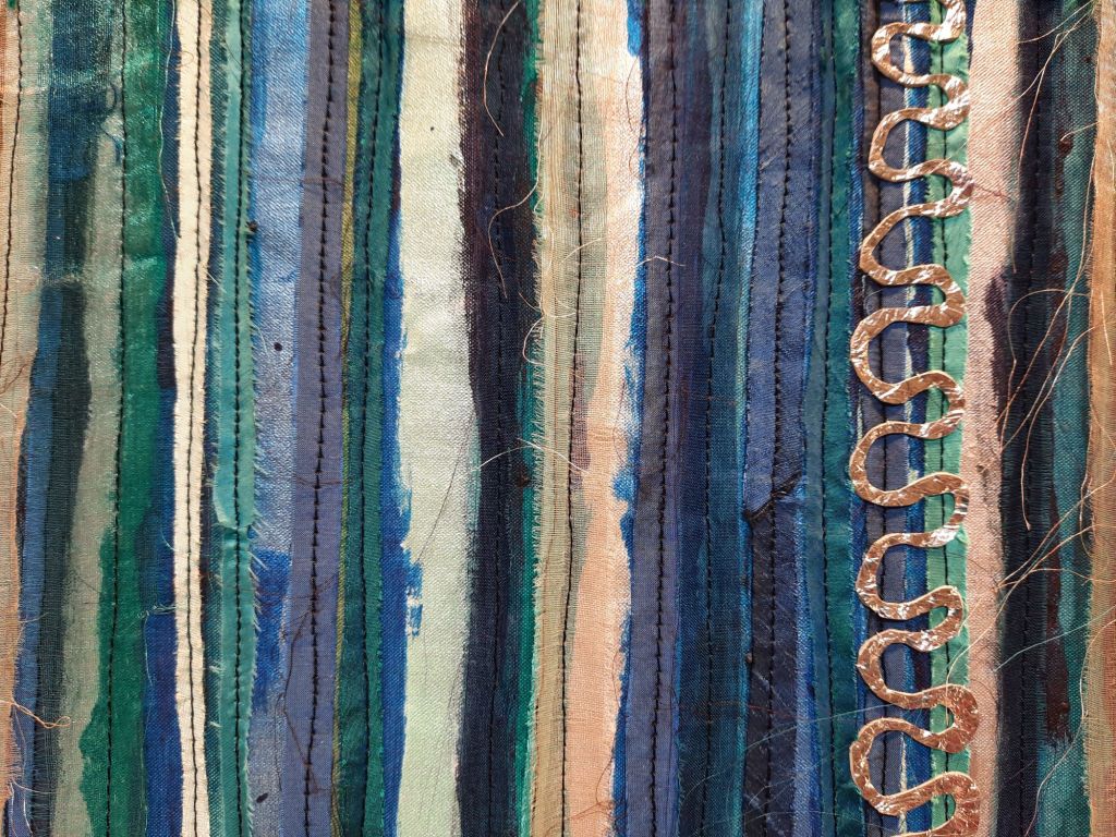 This close-up of panel three shows the extensive range of fabrics used to create the watery effects.