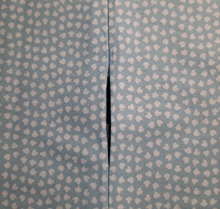 4 Continue with small backstitch stitches until 5mm beyond the tied-off threads of the original seam. Then finish off your sewing thread by doing two small stitches on top of each other on the spot before cutting the thread. On the right side of the garment the gap will be closed, as shown below.