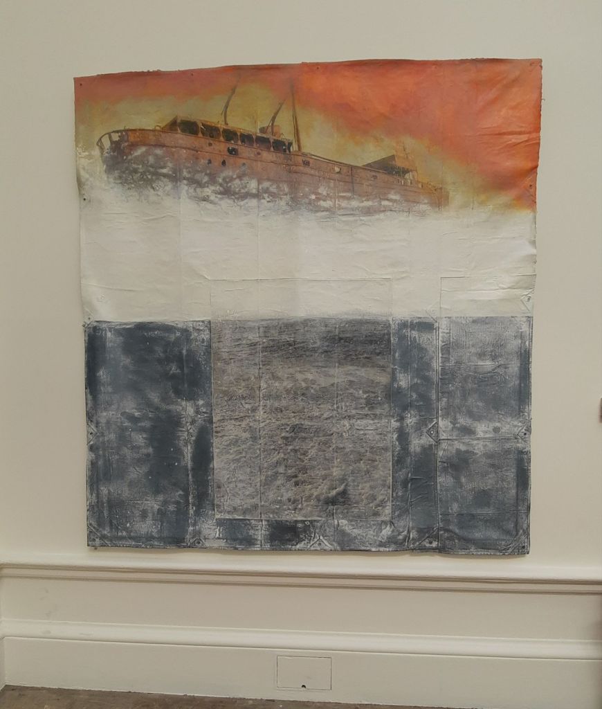 The large-scale artwork below by Hughie O’Donahue would be described as a painting, but look closer and you see that is painted on a big piece of tarpaulin, which is a textile… interesting.