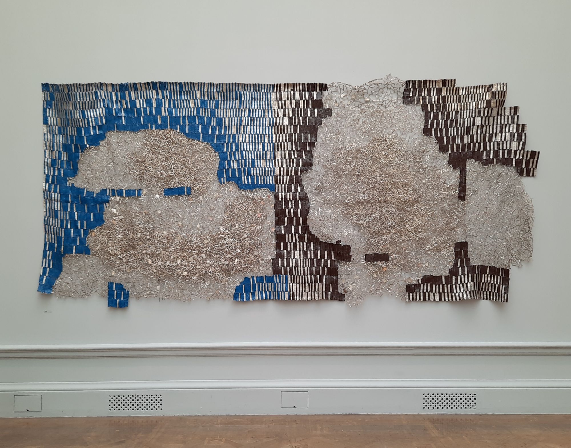And finally, is the artwork below a textile piece? The small pieces of metal appear to be ‘stitched’ together with wire to create this striking image of continents, as if on a map.