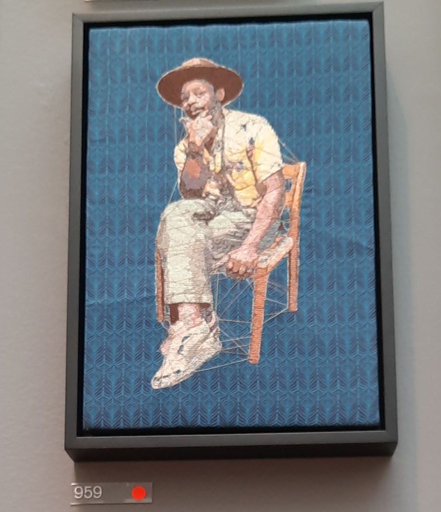 The portrait below by Blair Cahill caught my eye, as a two-person portrait by this artist was one of my favourites from last year’s exhibition. I like the threads running across the surface which give extra emphasis to the fact that this is not a portrait made with paint!