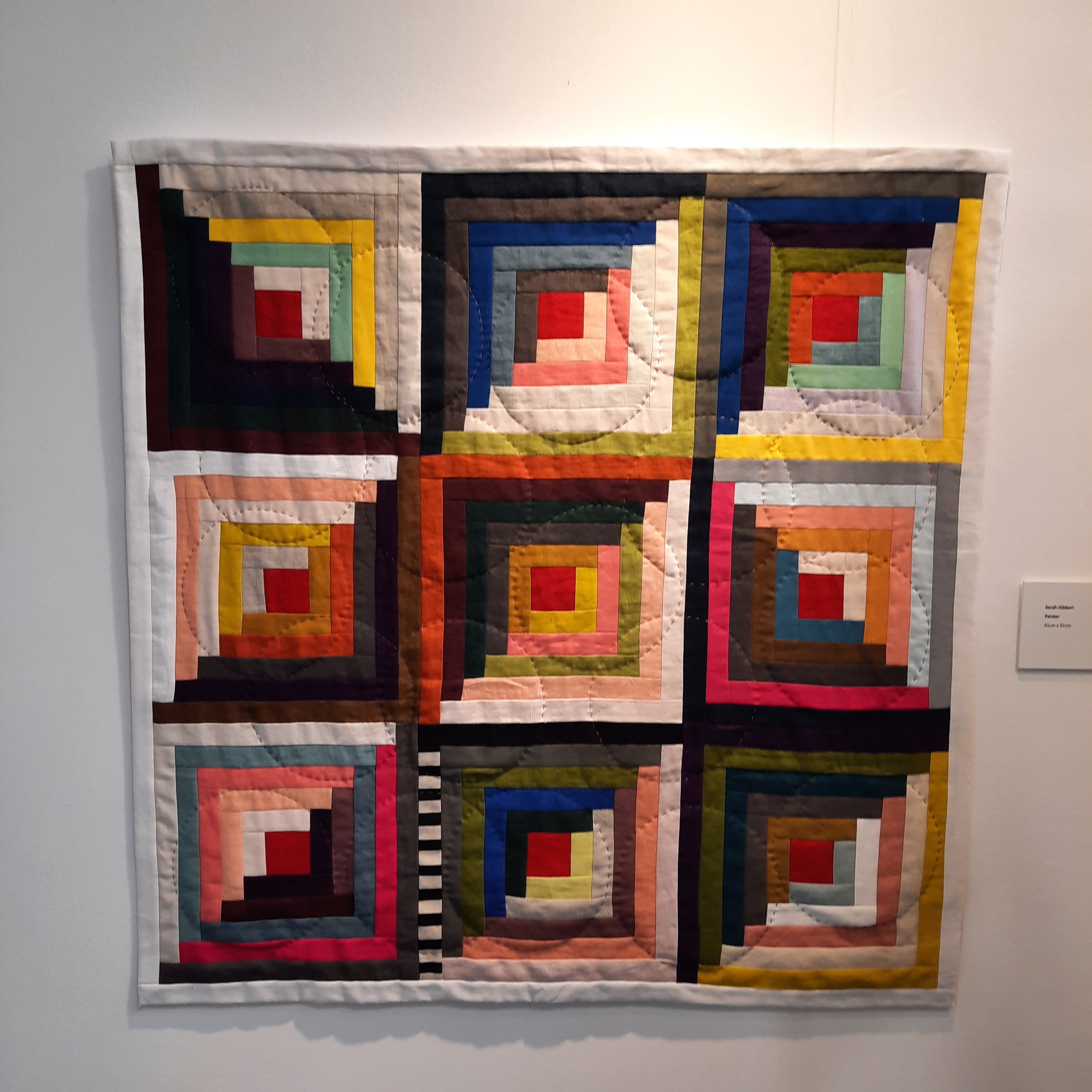 Sarah Hibbert and Jaeyoung Eom each exhibited quilts on their joint stand which were inspired by the other quilter, like a fabric conversation. Yet the two artists had not met until this year’s Festival! Most interesting. Here is one of Sarah’s quilts ‘Painter’: