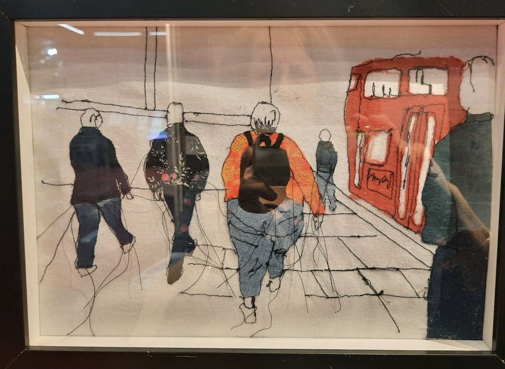 I recently went to see an exhibition entitled ‘London Life’, by the twelve members of Phoenix Contemporary Textiles. It was held in the Library at The Barbican, London. There was much to enjoy…
