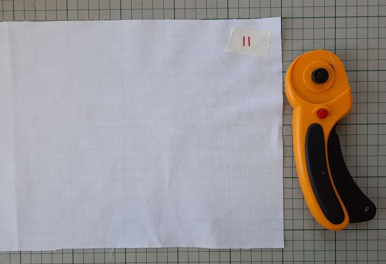 After cutting the piece, use a square of masking tape to add the number shown below in square brackets, for example [11]. This will help you to assemble the quilt top.