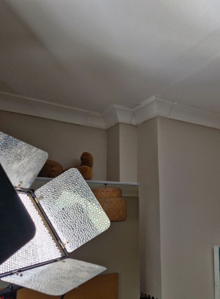 There was also the loan of a professional light, as seen above, focused on the ceiling, which ensured perfect ambient light in the room, as seen below.