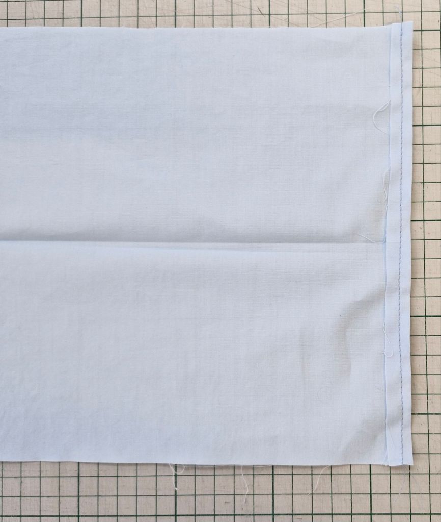 9. Lay the sleeve on your worktable with the two ironed-in folds at the top and the bottom. The sleeve will bulge out towards you. This shape allows a wooden batten to be placed within the sleeve (without any distortion to the front of the quilt).