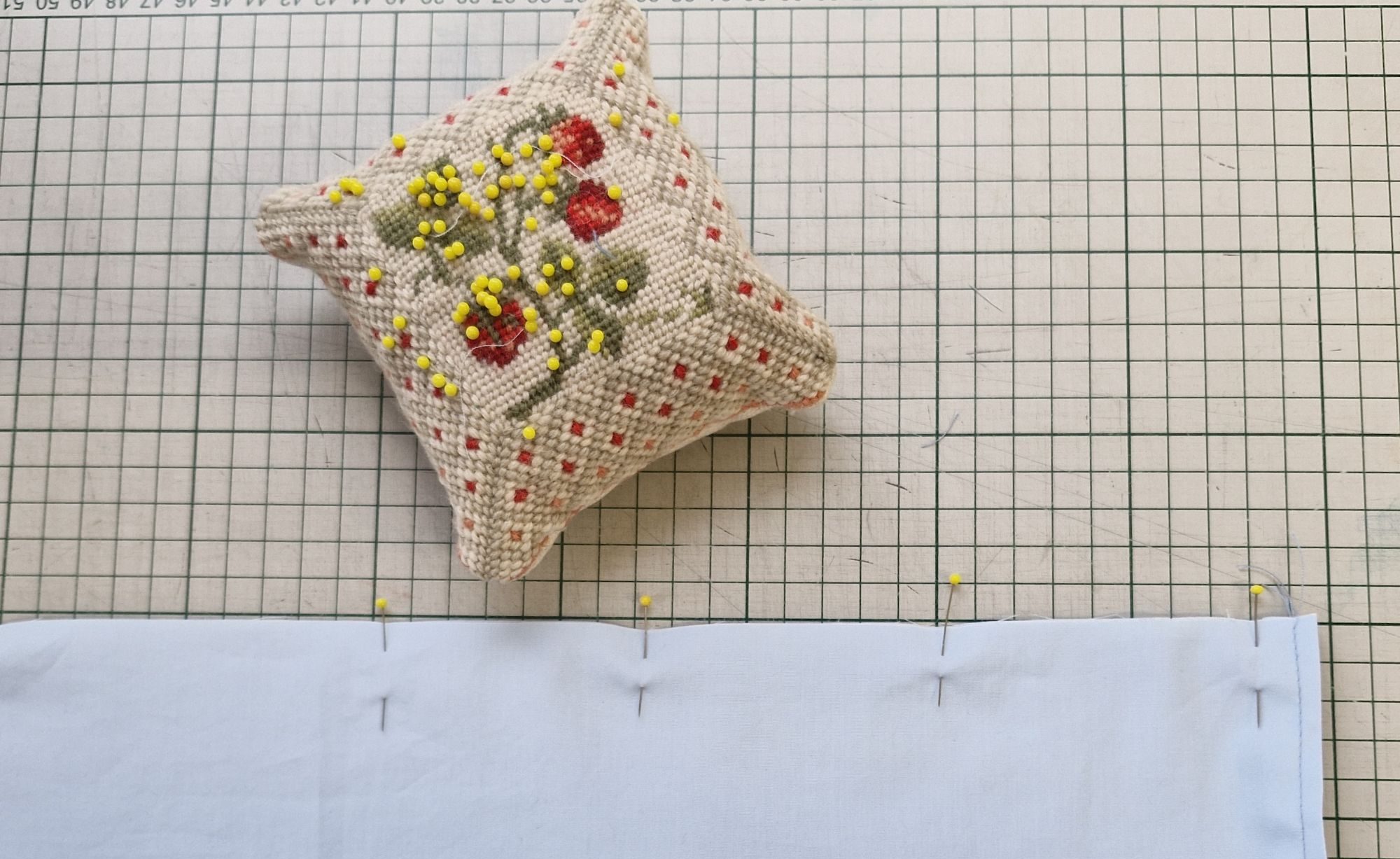 9. Lay the sleeve on your worktable with the two ironed-in folds at the top and the bottom. The sleeve will bulge out towards you. This shape allows a wooden batten to be placed within the sleeve (without any distortion to the front of the quilt).