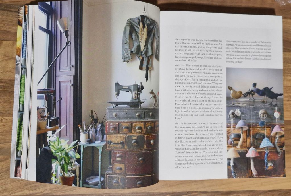 Ann likes to work with found objects and is inspired by the natural world. There is an element of fantasy about her delicately stitched creations.