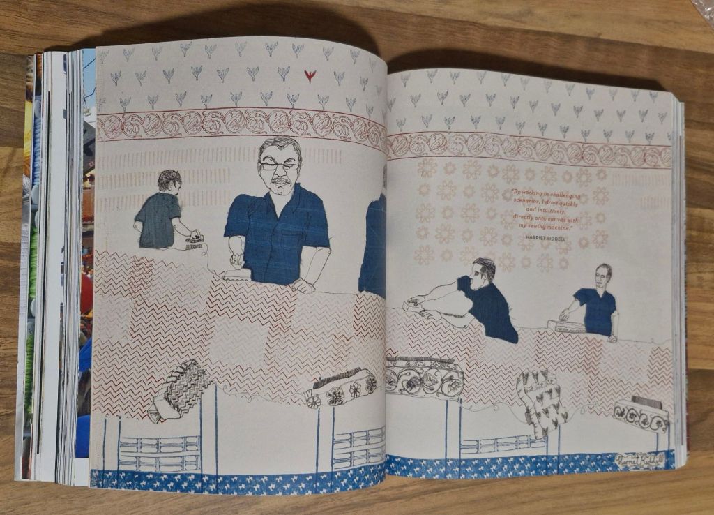 Below you can see Harriet’s characterful stitched portraits of block-printing experts in India.