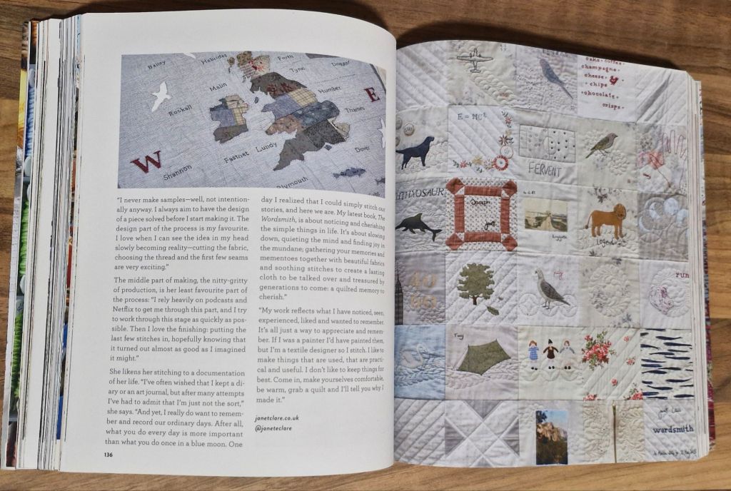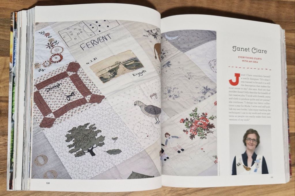 Another British artist featured in the book is Janet Clare, pictured below right. Janet is a fabric designer, quilter, embroiderer and author. I heard her give a talk to a local quilt group in Kent since meeting her and it was fascinating to hear how the various aspects of work linked together.