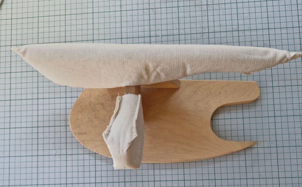 Below is another pressing aid, used mainly for dress-making. The tool is designed to rest on the work table in different ways so that you can place your sewing on the appropriate padded area and press individual parts of the garment.
