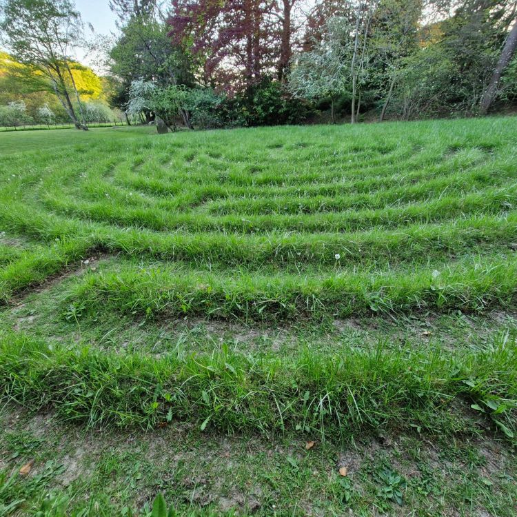 In the grounds, there is a grass labyrinth which you can walk in a contemplative way. You can see the pattern in this photo: