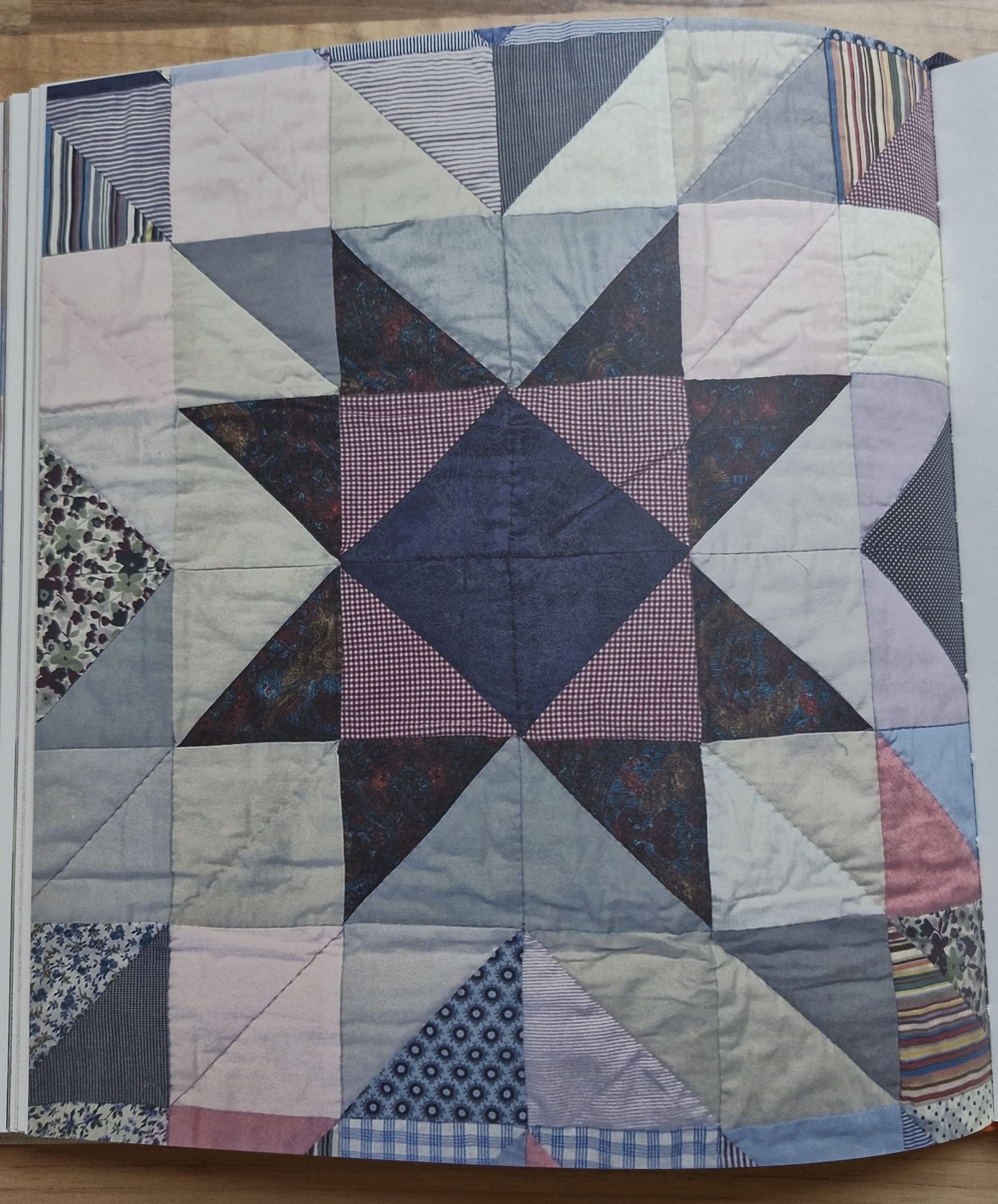 The quilt below is one of four commissioned from Fine Cell Work by Michelle Curran to commemorate her husband Neil. The quilts were all made from clothing belonging to him and they included the Ohio star block as shown below.