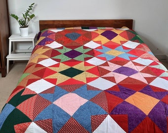 Recently, photos of ‘Colours of Mexico’ caught the eye of another client and a request was passed on for me to make another colourful version of the quilt. Thus, I am once again returning to the vibrant hues of the first ‘Colours of Mexico’ quilt and as I have looked again at the pattern, I have seen ways that it could be improved. The method of making each block could be simpler. The design lends itself to using lots of different fabrics in the quilt, both solids and prints and ways of doing this could be made clearer too.