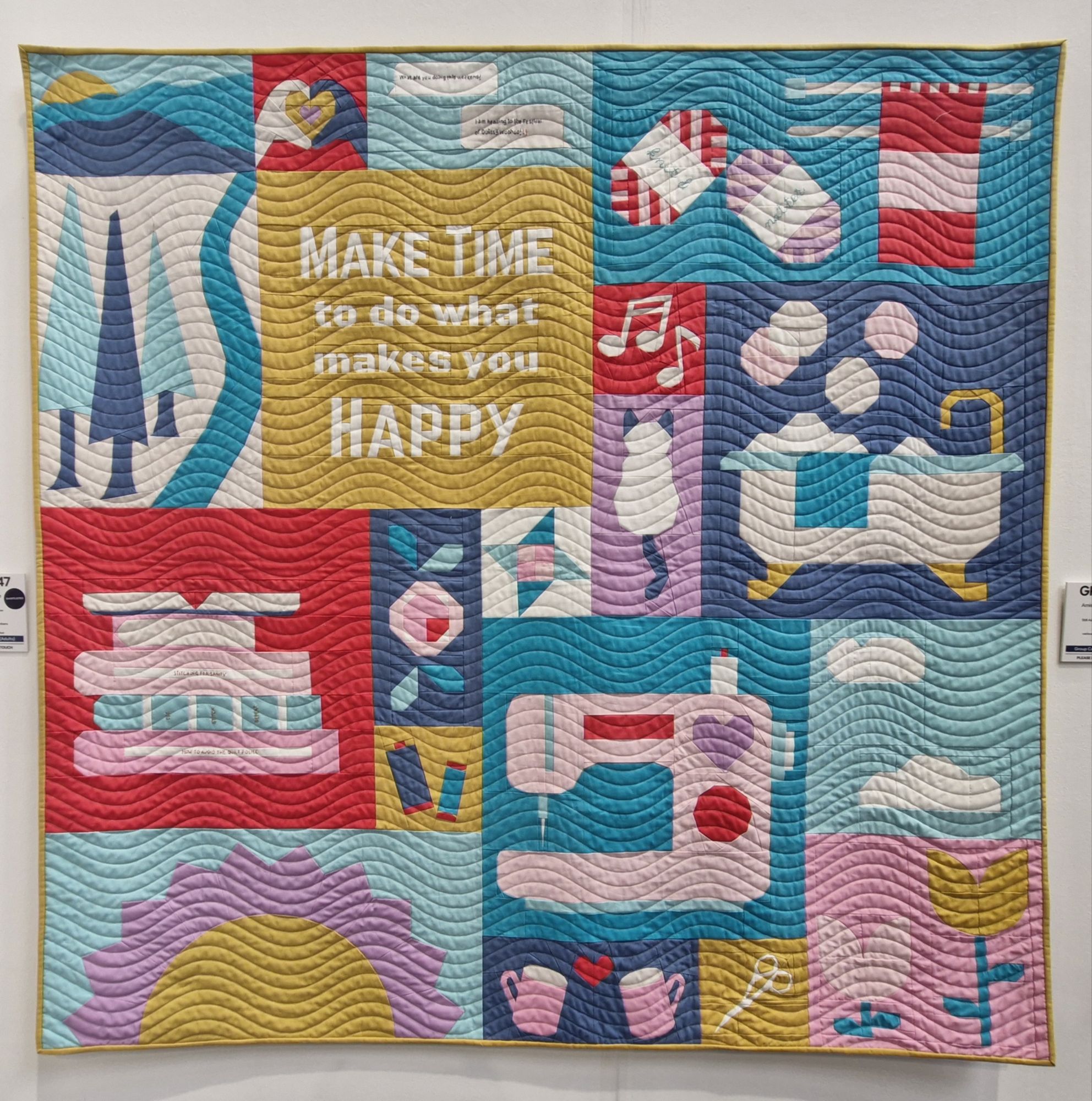 I also enjoyed the graphic shapes of these attractive birds (designed by Nicky Lintott) in a quilt made by Shelley-Louisa Colton and long-arm quilted by Graham Farrar in the ‘My First Quilt’ category.