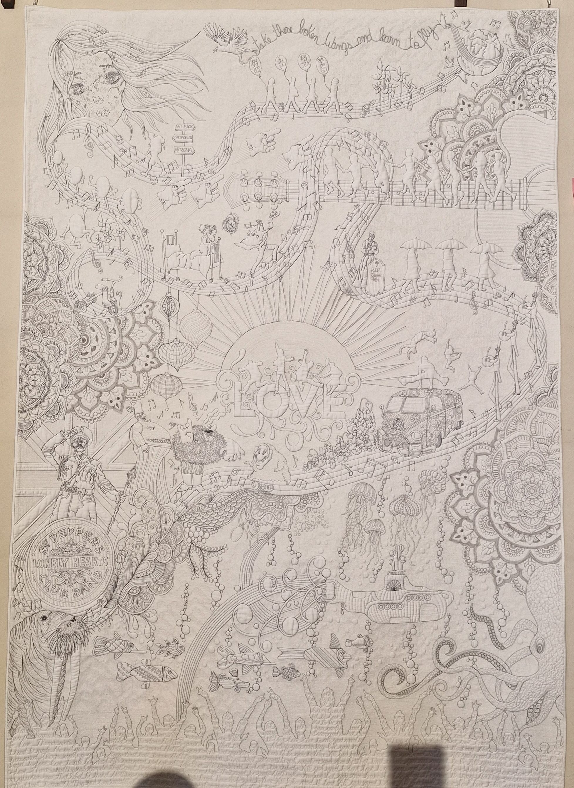 A very different, but again a strongly graphic piece in black and white, was the large quilt by Fabia Diniz, which references thirty different Beatles’ songs: