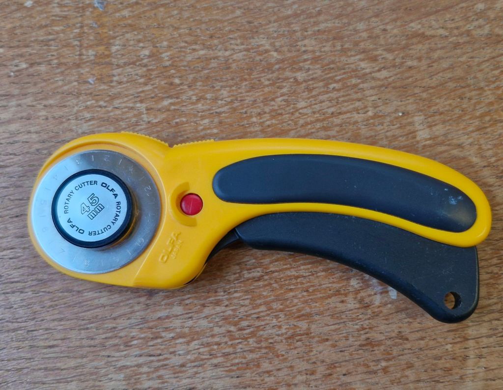 You need a rotary cutter. The model below has a trigger type handle, which retracts the blade as soon as you let go of the handle. This is a useful safety feature for beginners as the blade is very sharp.