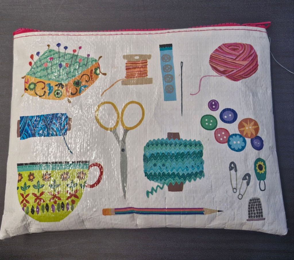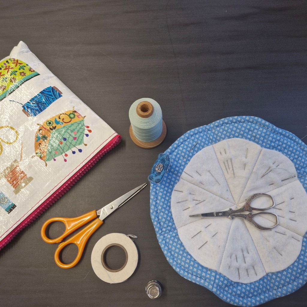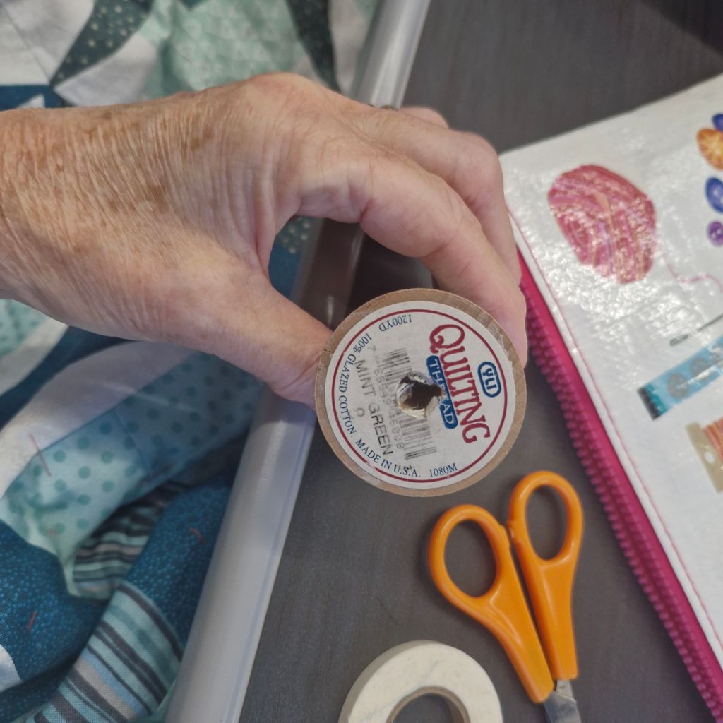 I bundled my quilt into my extra-large bag (details below) and put a small kit together in a small zip-up pouch.