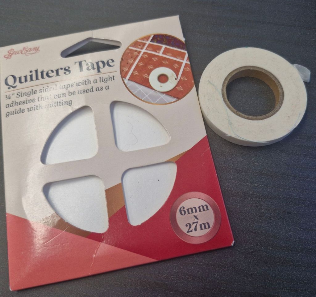 I then stitch along the top of the tape, then lift the tape and place it on the next section to be quilted.
