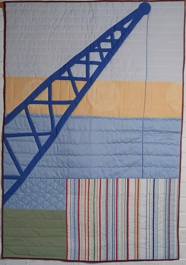 Below is a sample piece that I made recently in which I explored improv piecing techniques. Here I am looking at the waves off the beach in Ramsgate and including one of the yellow buoys in the bay.