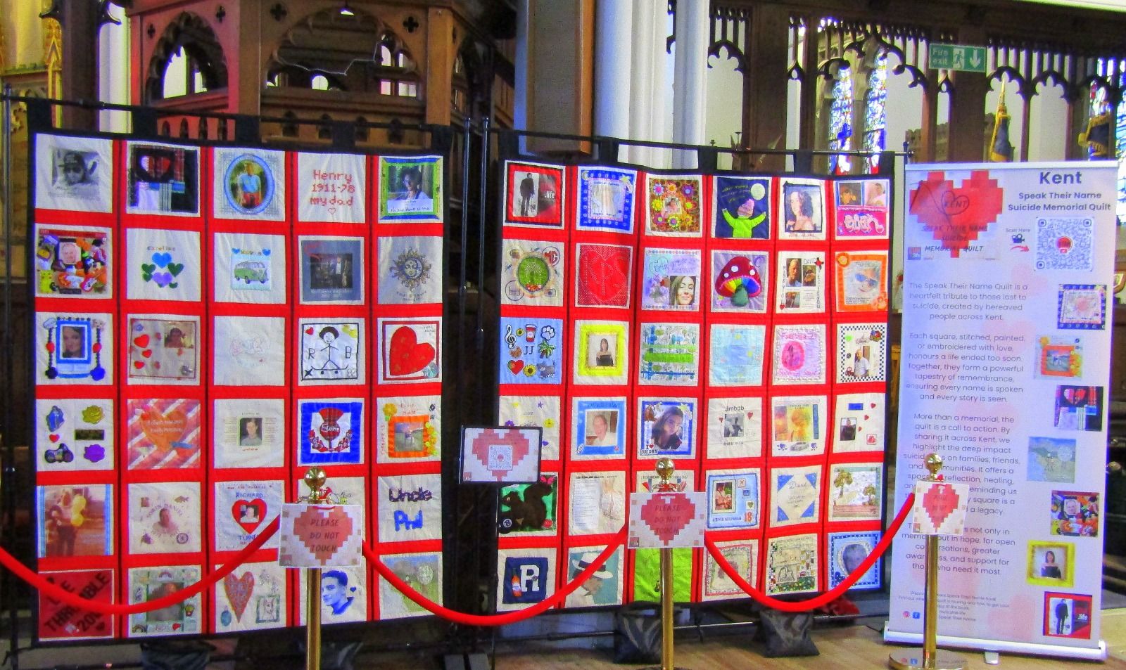 This Saturday the ‘Kent Speak Their Name’ Suicide Memorial Quilt was installed at St George’s Church, Ramsgate. This is how the exhibit launch was advertised: