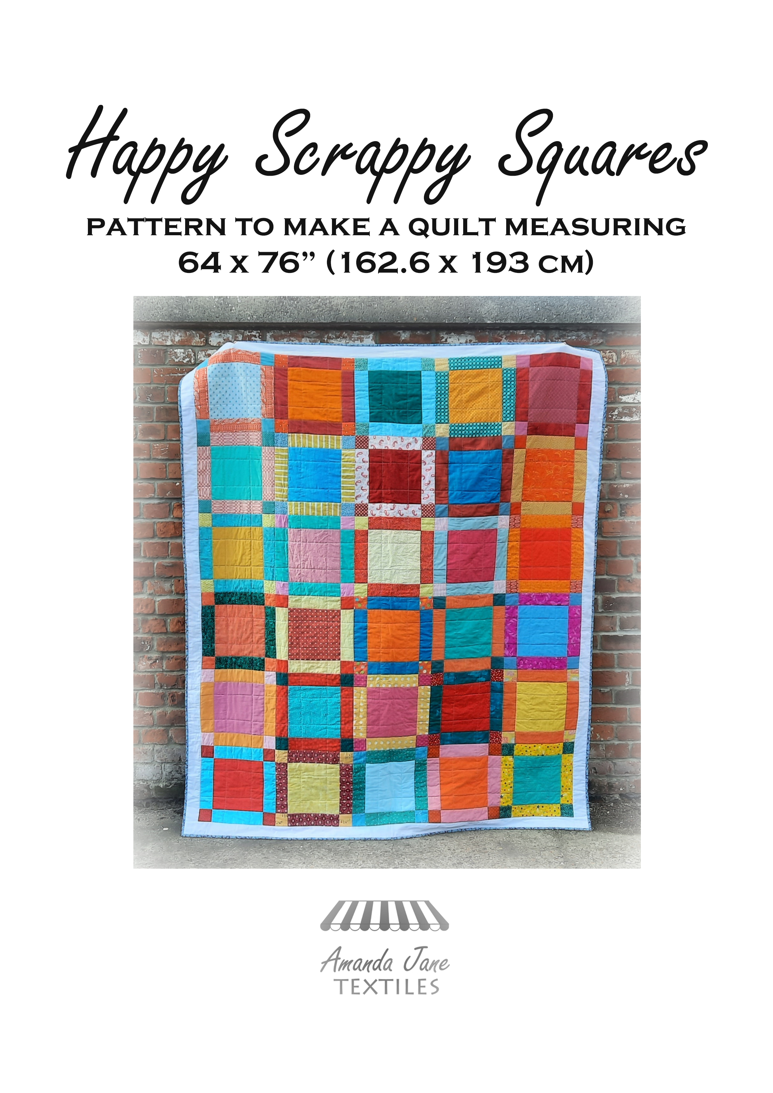 I’m happy to tell you that my scrap-loving quilt pattern ‘Happy Scrappy Squares’ has just gone in to the Amanda Jane Textiles Etsy shop. This is a pattern that I first designed for ‘Make Modern’ and which I am now allowed – under my contract with magazine – to publish under my own name.