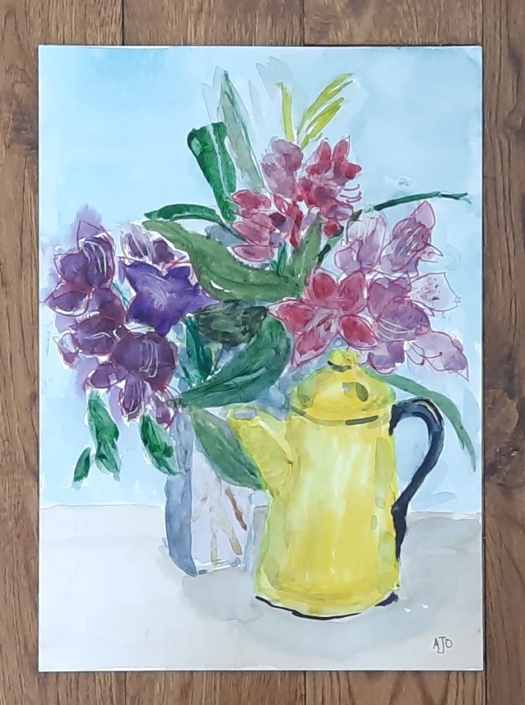 Watercolour on watercolour paper. 35 x 26cm (14 x 10″). Signed AJO