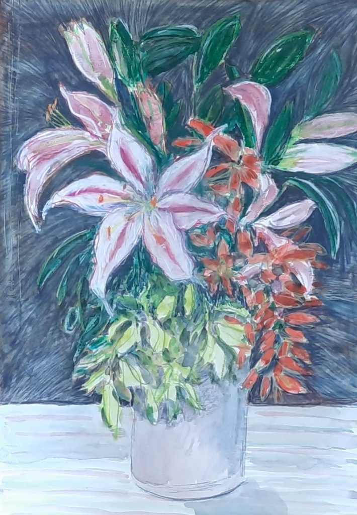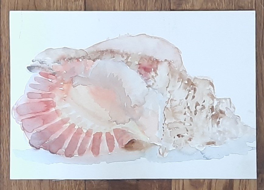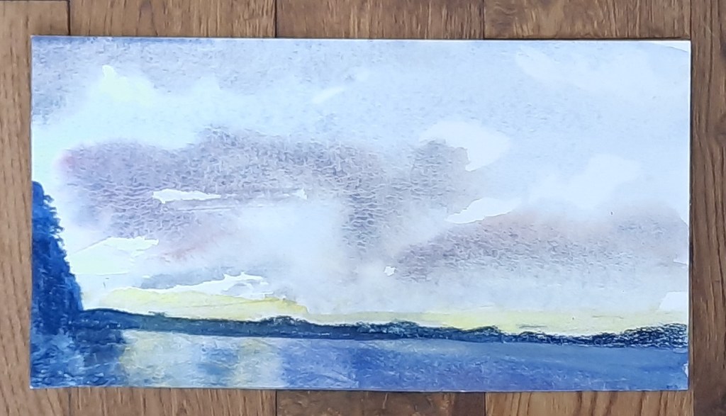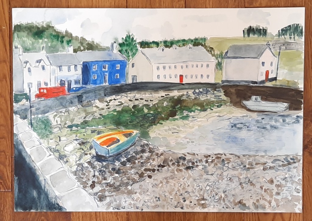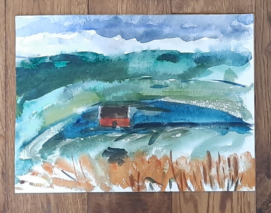 Watercolour and pastel on cartridge paper. 30 x 42cm (12 x 1.5″). Signed AJO.