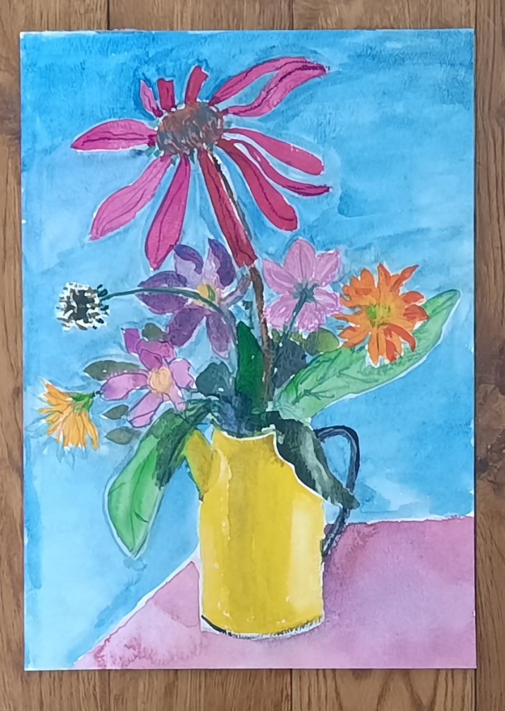 Watercolour and coloured pencil on watercolour paper. 60 x 42cm (23.5 x 16.5″) Signed AJO £135