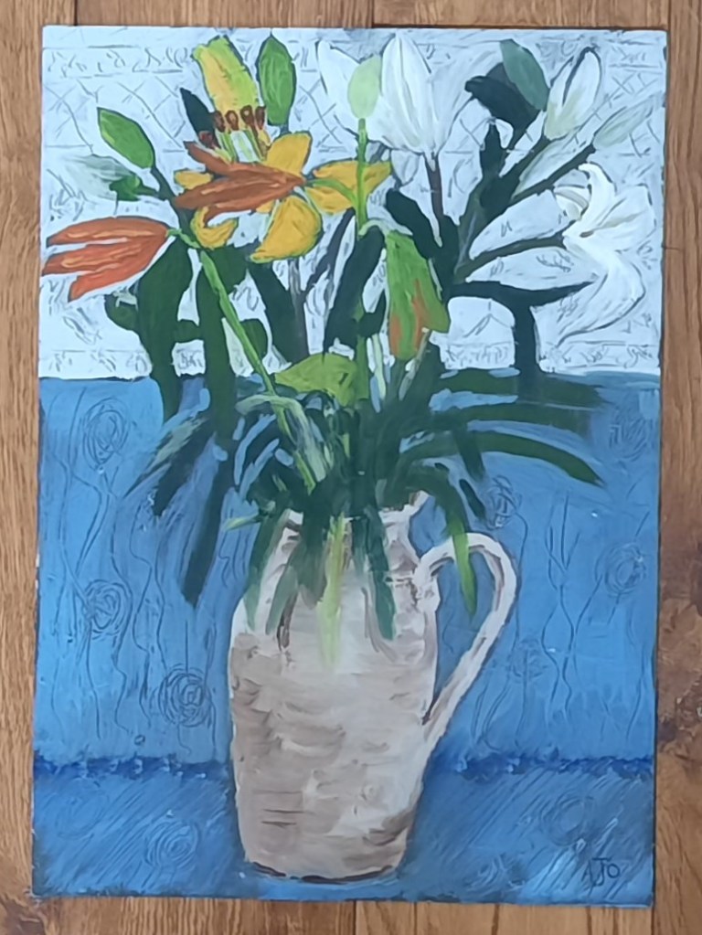 Acrylic on canvas 40 x 30cm (16 x 12″). Signed AJO