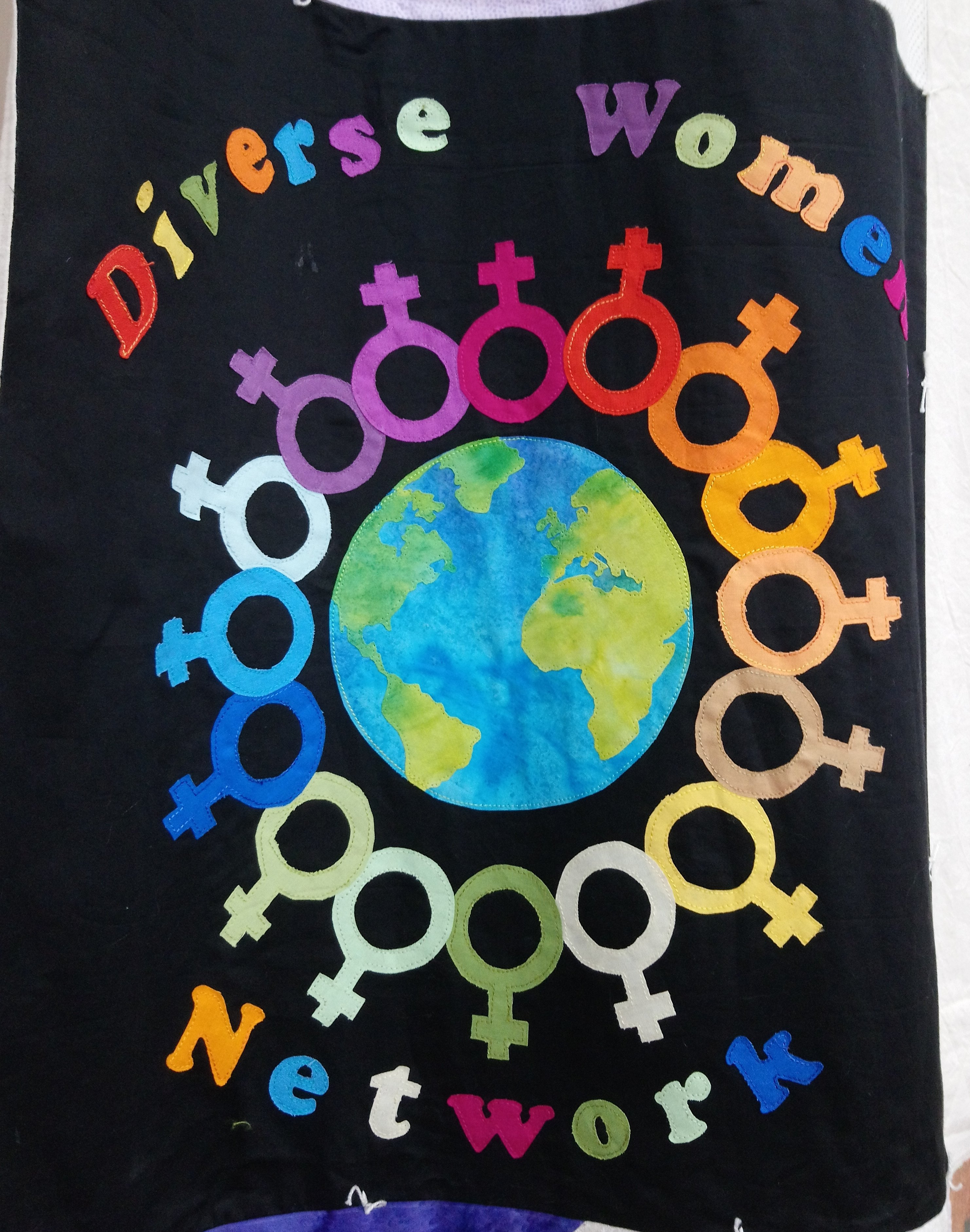 The ‘Diverse Women Nework’ portion of the Community Banner for the Miners’ Gala, photo by Amanda Jane Textiles