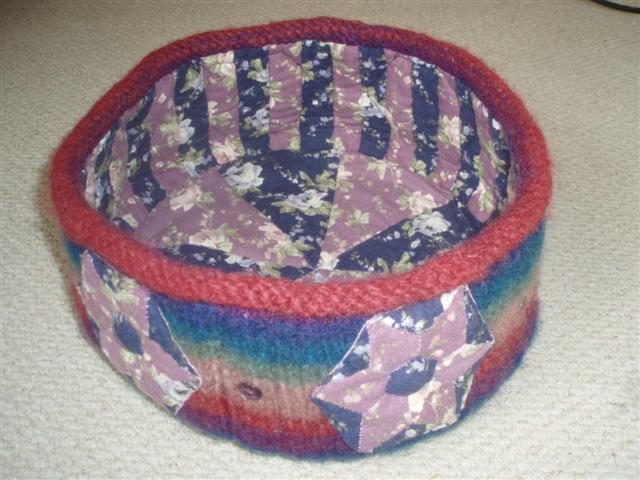 Next came quilted items made on a City & Guilds level 3 Patchwork and Quilting course, taught by Barbara Weeks at Missenden Abbey in Buckinghamshire (www.missendenabbey.co.uk/courses). The course took place during twelve weekends over two years and during it I made: a lined, felted wool container, a sewing machine cover, a mirror frame and a single-bed quilt based on a trip to Australia (‘Blue Mountains’).